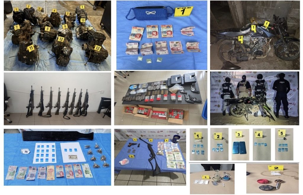 Estas acciones se realizaron en coordinación con la Secretaría de la Defensa Nacional (DEFENSA), Secretaría de Marina (SEMAR), Guardia Nacional, la Secretaría de Seguridad Pública Estatal (SSP) y autoridades municipales, lo que permitió neutralizar focos de criminalidad en distintas regiones del estado: