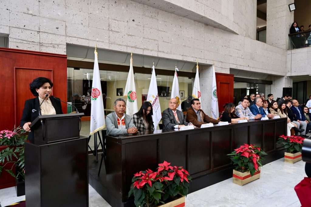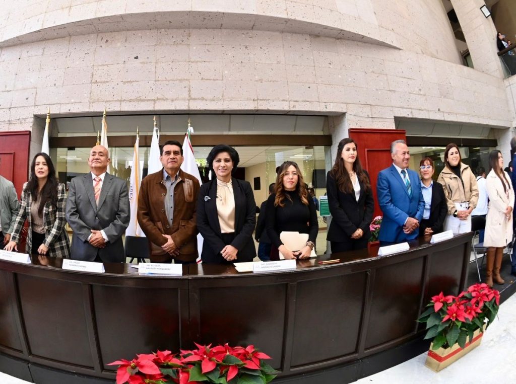 Estuvieron presentes en el este acto las diputadas Estefanía Bastida Cuevas, Ivonne Selene Durán López, Lucía Begoña Canales Barturen, Tania María Cruz Mejía, Montserrat Ortega Ruiz, Nallely Mendoza Camarillo, Ana Rosa Valdés Salazar, Liud Herrera Félix, Laura Nayeli Mejía Larios y Guadalupe Vázquez González.