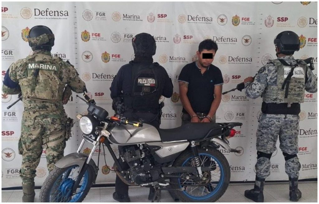 Por el delito de portación de arma de fuego, los uniformados detuvieron a una persona, asegurándole un arma de fuego corta y una motocicleta sin reporte de robo.