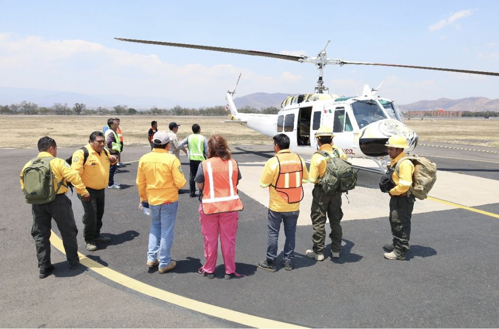 El helicóptero utilizado tipo UH-1H con matrícula XA-UDZ, pertenece a la empresa Aeroanáhuac S.C., en Oaxaca ya suman un total de 90 incendios forestales en tres meses, con una devastación de más de 9 mil 500 hectáreas de bosques y 5 víctimas fatales.