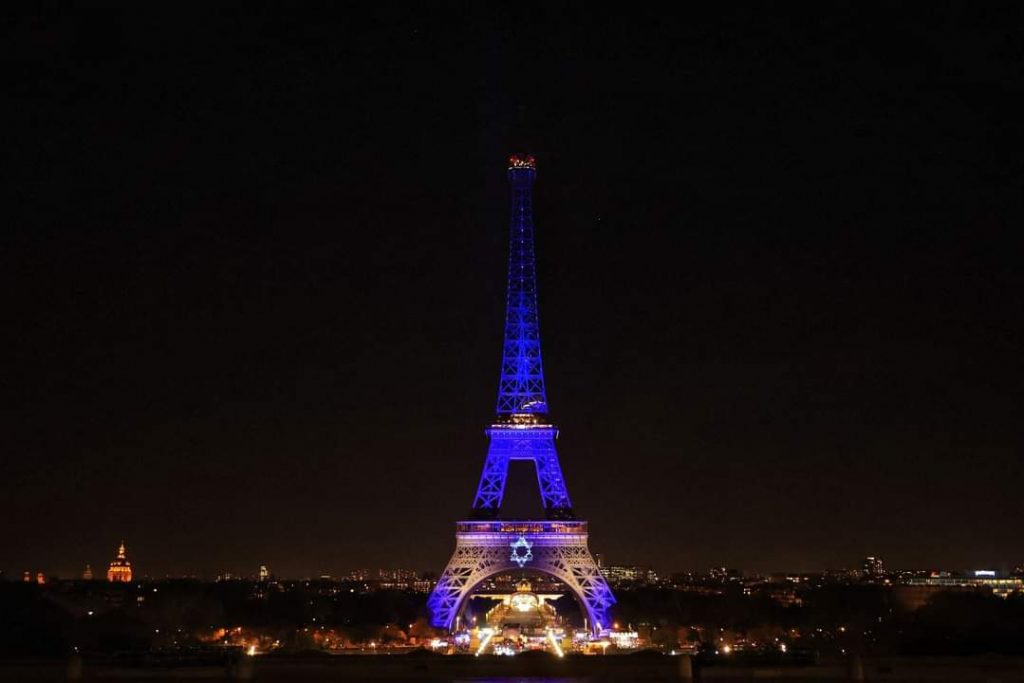 En Twitter, la alcaldesa de la ciudad, Anne Hidalgo, compartió una foto de la Torre Eiffel iluminada en azul con la estrella de David.
