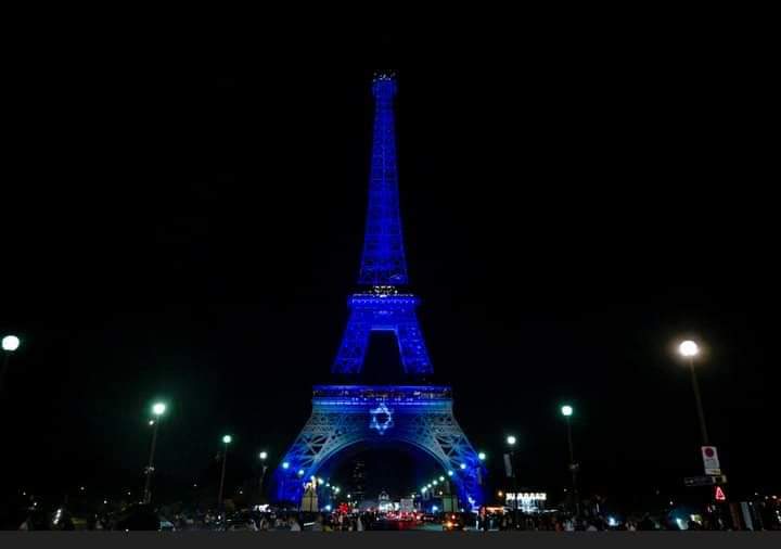 En París, mientras que la Torre Eiffel y la Asamblea Nacional se iluminaron con los colores de la bandera de Israel.