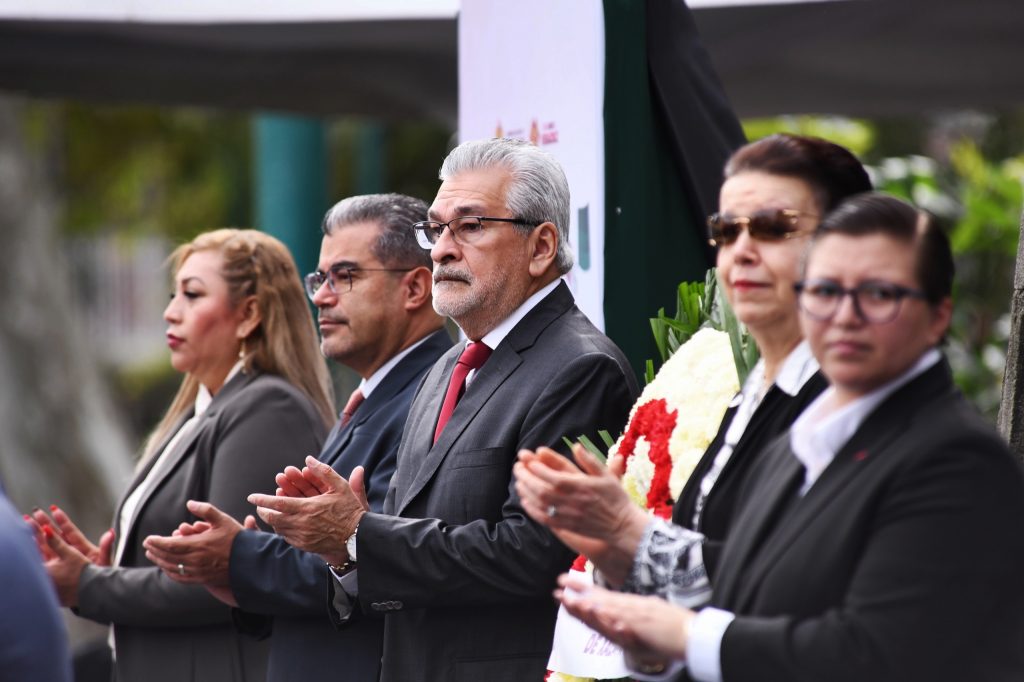 A la Guardia de Honor y colocación de ofrenda floral que se realizó ante el monumento a Miguel Hidalgo, asistieron la síndica única, Cecilia Coronel Brizio; las y los regidores Helen Sarmiento Jaén, Carlos Ortega Murguía, Diego David Florescano Pérez, Dora Angélica Méndez López, María Guadalupe Márquez Leonardo