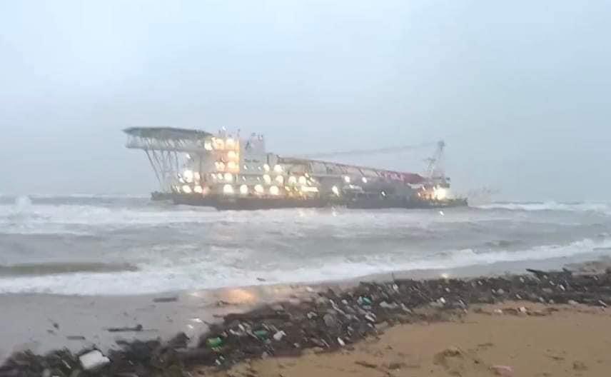 Fuerte oleaje arroja hacia la costa de VillaAllende Coatzacoalcos a la Barcaza “Tog Mor”, misma que quedó varada con 135 tripulantes a bordo.