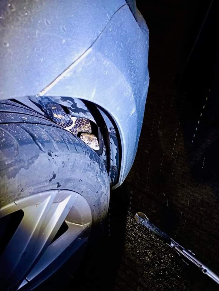 Encuentran boa en la salpicadera de un auto en Xalapa, Ver.