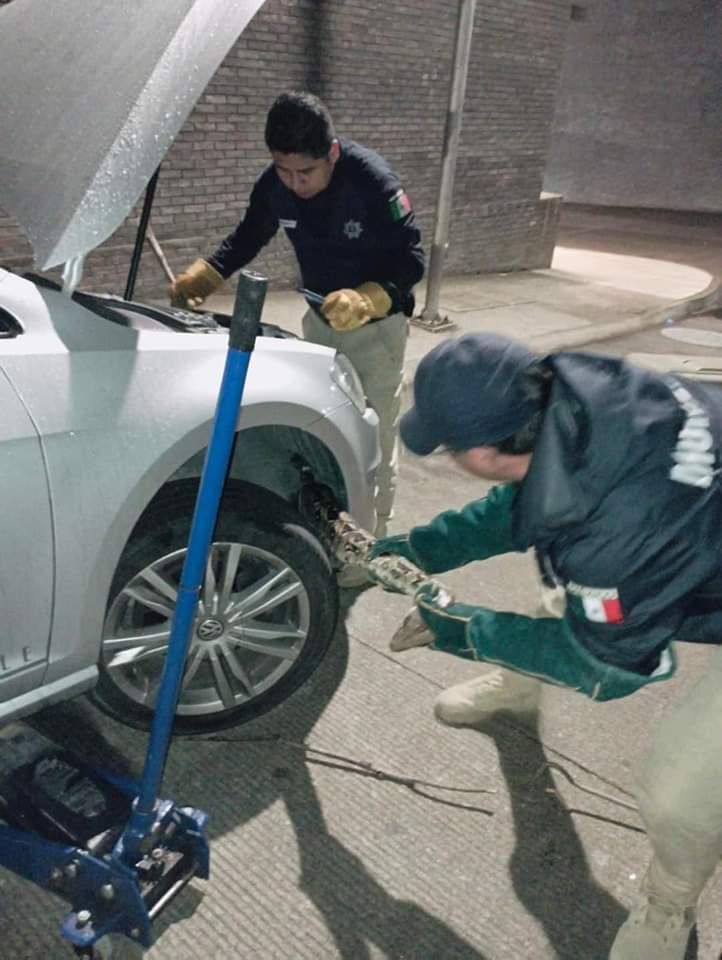 Una boa fue localizada entre la salpicadera delantera de un automóvil estacionado en la zona del fraccionamiento Monte Magno.