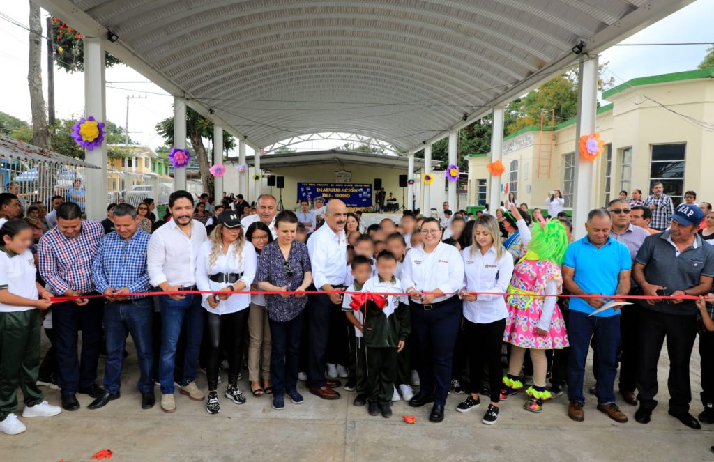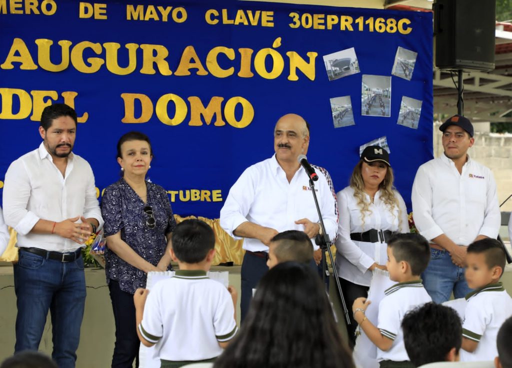 Xalapa, Ver.- Como una contribución personal de las y los integrantes del Cabildo, funcionariado encabezado por el presidente municipal Ricardo Ahued Bardahuil entregó un domo a la Escuela Primaria Primero de Mayo en la congregación El Tronconal.