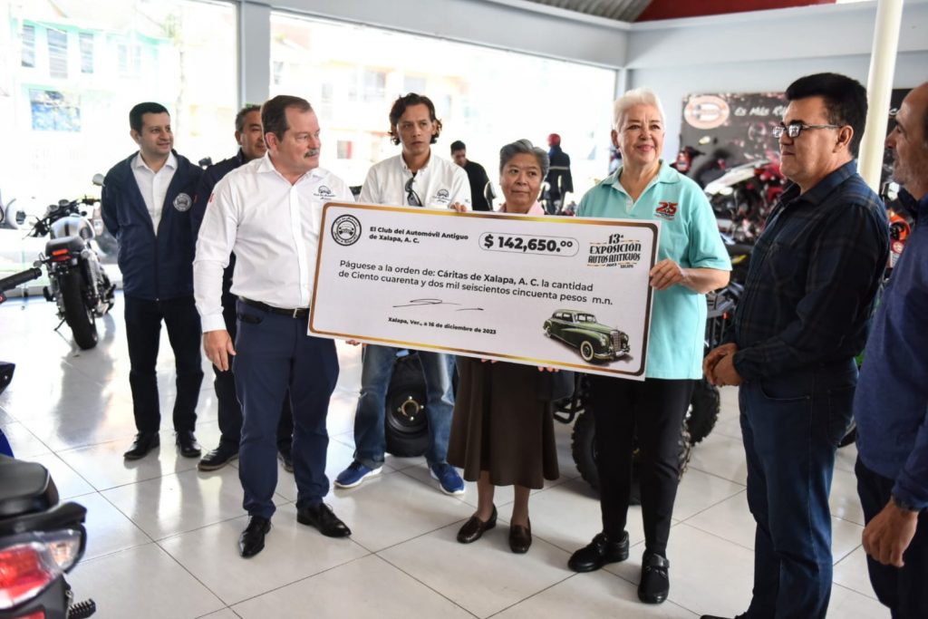Este sábado el Club del Automóvil Antiguo de Xalapa entregó a Cáritas de Xalapa, A.C., el monto de 142 mil 650 pesos, monto recaudado en la 13a Exposición de Autos Antiguos de Xalapa.