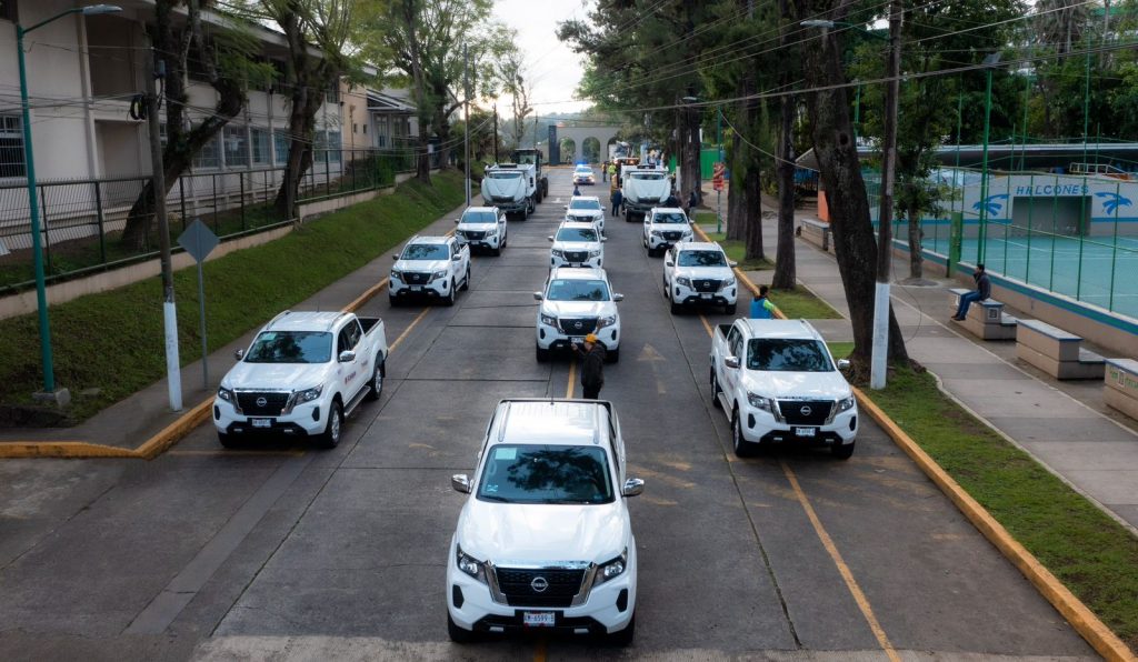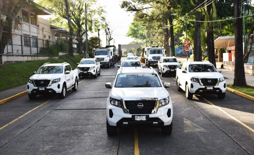 Se trata de dos camiones de volteo de 14 metros cúbicos, diez camionetas Pick-Up Frontier, una retroexcavadora con martillo hidráulico y una motoniveladora, unidades que se utilizarán para mejorar los servicios en las direcciones de Obras Públicas, Protección Civil, Medio Ambiente, Limpia Pública, Juventud, el Sistema DIF Municipal, Turismo, Desarrollo Social, Desarrollo Económico y la Coordinación de Comunicación Social.