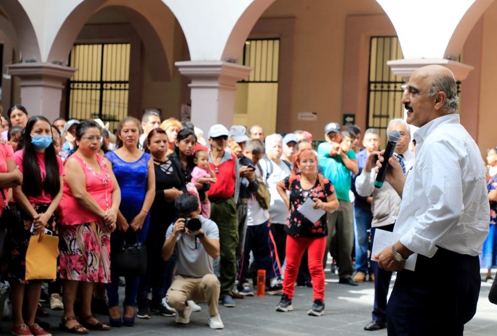 En el patio central de Palacio Municipal, el Edil reiteró que las obras no se hacen con discursos, sino con recursos, de ahí que con la obra realizada por el Ayuntamiento y la Comisión Municipal de Agua Potable y Saneamiento (CMAS) en 2022 y 2023, este año se entregarán 450 calles con agua y drenaje, cumpliendo con las factibilidades para posteriormente, construir guarniciones, banquetas y pavimentos.