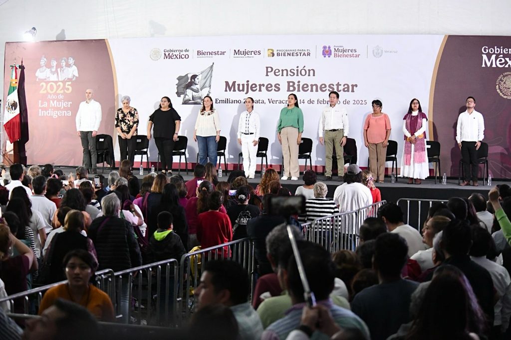 Emiliano Zapata, Ver., viernes 14 de febrero de 2025.- En el marco de la entrega de tarjetas de la Pensión Mujeres Bienestar, que beneficiará a 74 milveracruzanas, la gobernadora Rocío Nahle García dio la bienvenida a la presidenta, Claudia Sheinbaum Pardo, y destacó que este programa es una muestra del compromiso con la dignidad y la equidad de género.