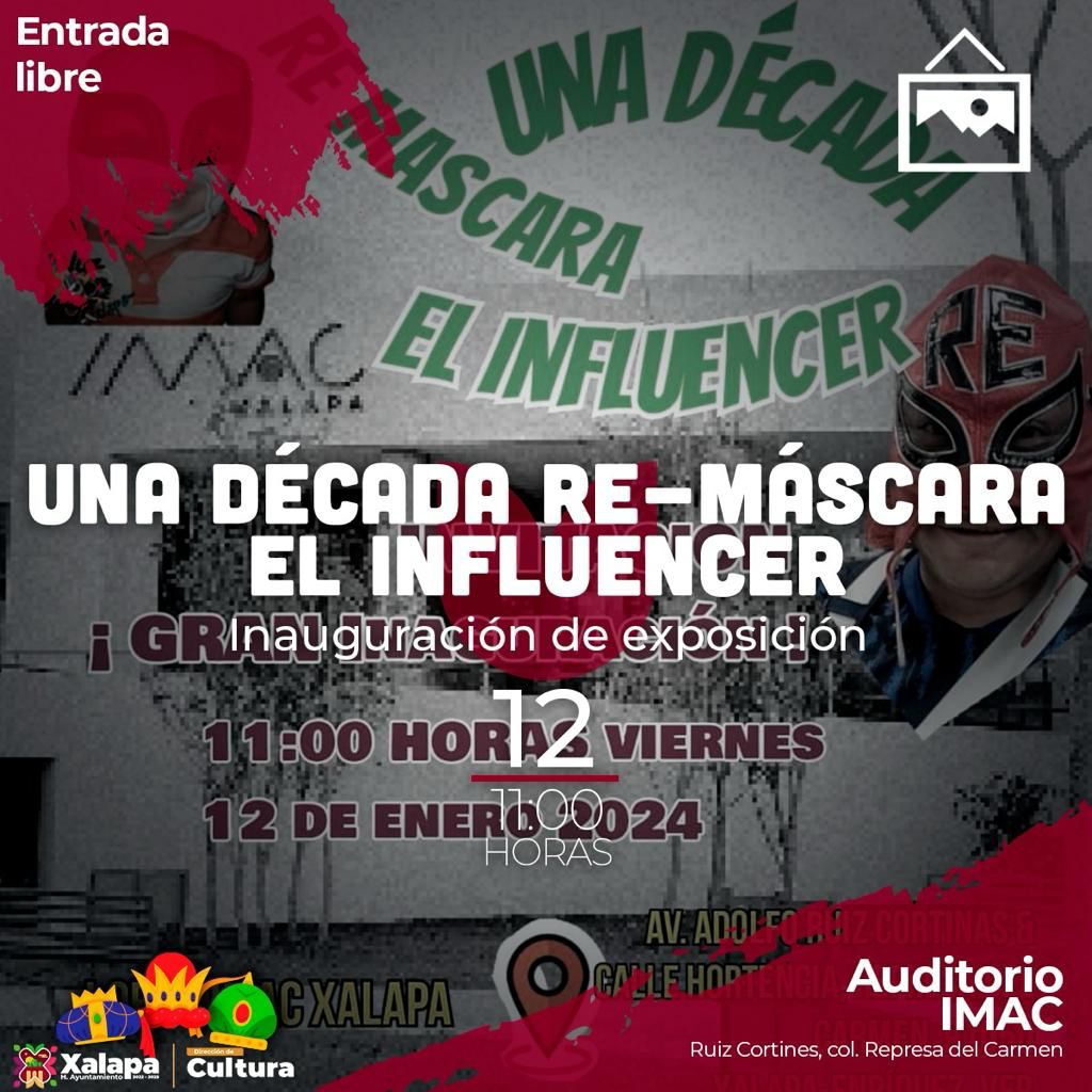 El viernes 12 de enero a las 11:00 horas en el auditorio de la IMAC se inaugurará la exposición “Una década re-máscara el influencer”; y a las 17:00 horas en la Galería Peatonal del Corredor Cultural “Carlos Fuentes” será el turno de la exposición “Colegio Preparatorio de Xalapa, 180 años educando con honor y tradición”.