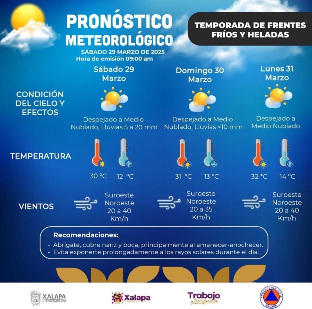 Xalapa, Ver.- Ante el pronóstico de lluvias para la tarde-noche de hoy y mañana, la Dirección de Protección Civil exhorta a la población a tomar las previsiones necesarias para evitar incidentes.