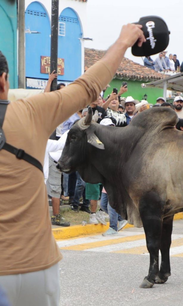 La cita fue a las 12:00 horas en la Plaza de los Jarochos, donde la suelta de toros se desarrolló en un ambiente de tradición y respeto por las costumbres tlacotalpeñas.