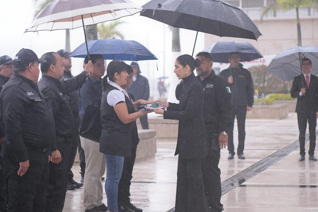 La Fiscal General hizo entrega de la bandera a la esposa del compañero fallecido y expresó personalmente sus condolencias, resaltando la invaluable labor de Raúl Palma Moguel como servidor público durante más de 30 años de carrera, por lo que su ejemplo de compromiso y entrega perdurará como un legado imborrable para la institución.