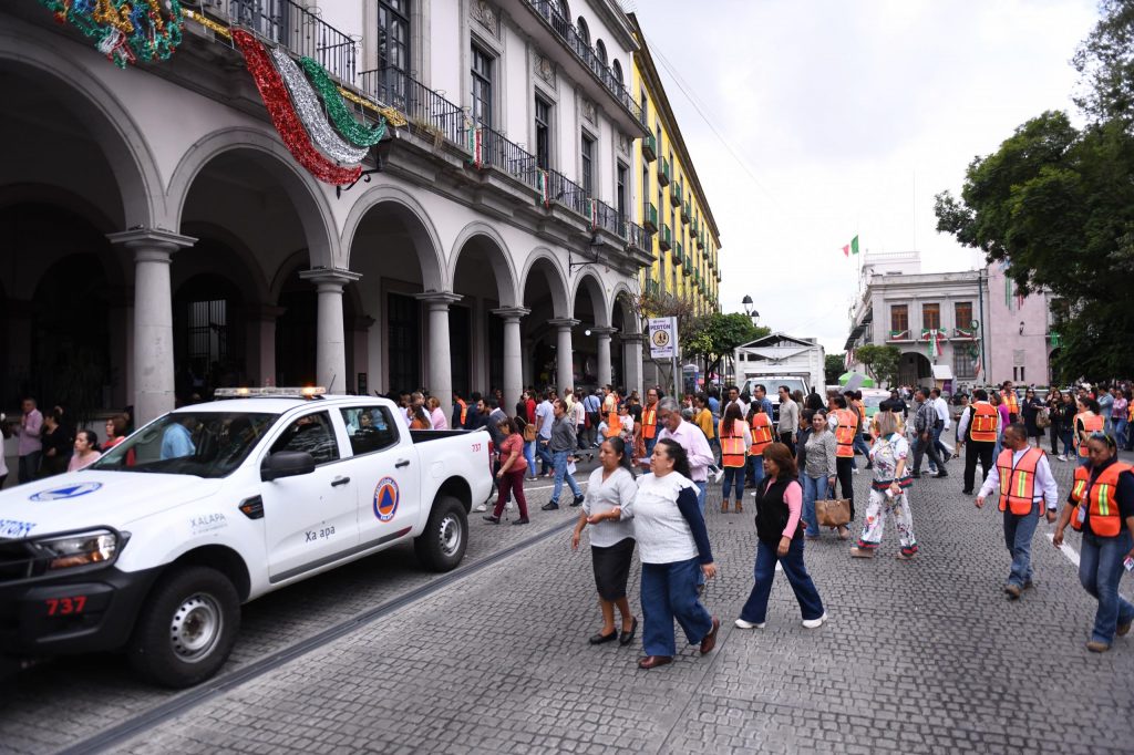 Xalapa, Ver.- Un promedio de mil personas fueron evacuadas de Palacio Municipal en un tiempo de 5 minutos 24 segundos, como parte del Simulacro Nacional 2025, con el que se conmemoró el Día Nacional de la Protección Civil, a 40 años del sismo de 1985.