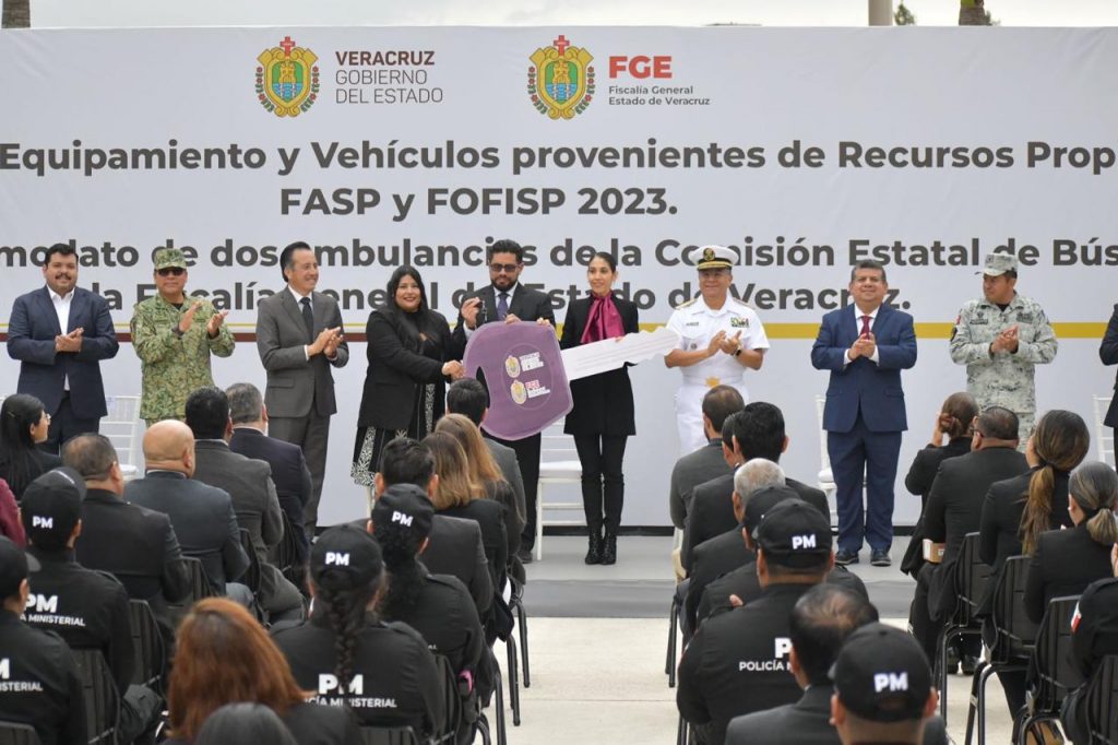 Gobernador del Estado de Veracruz y la Fiscal General entregan vehículos, uniformes, equipo de cómputo y mobiliario.