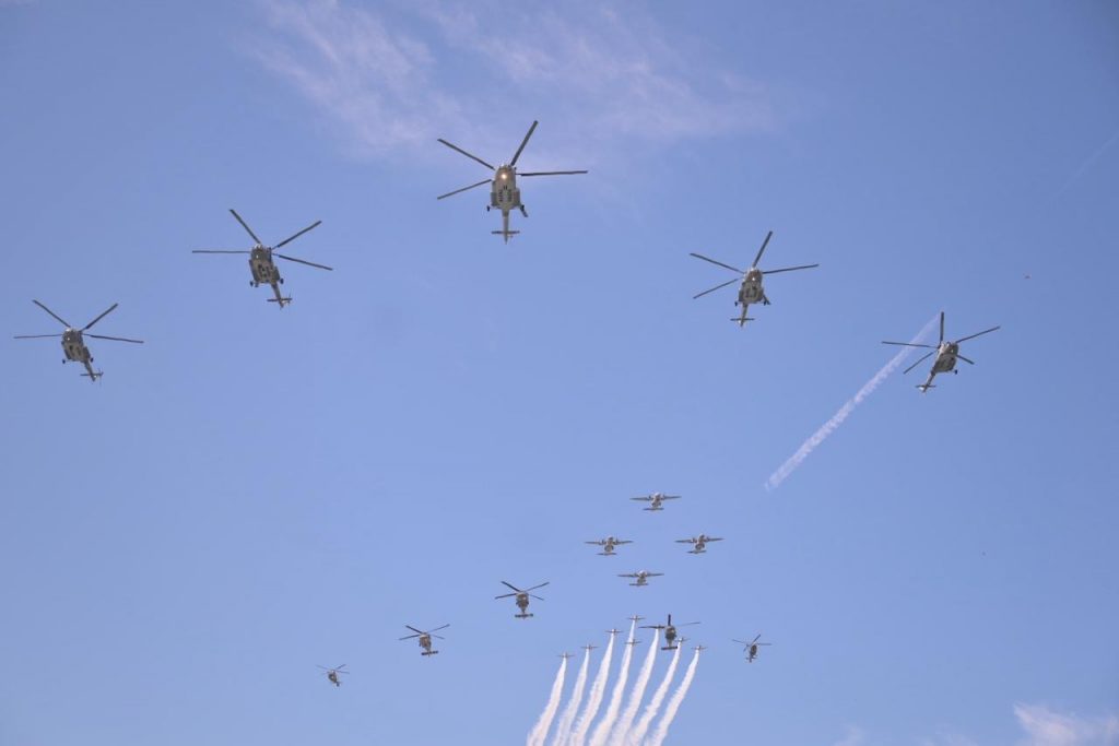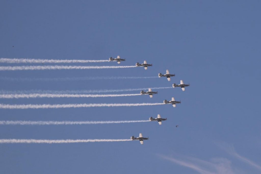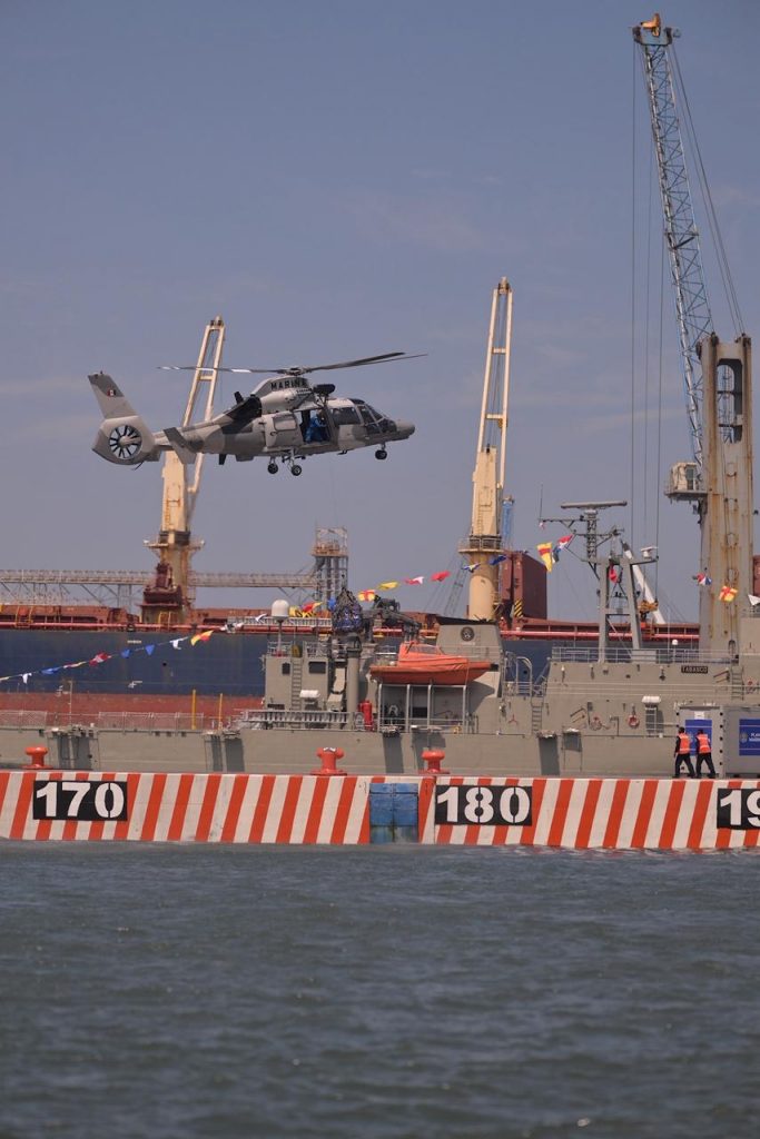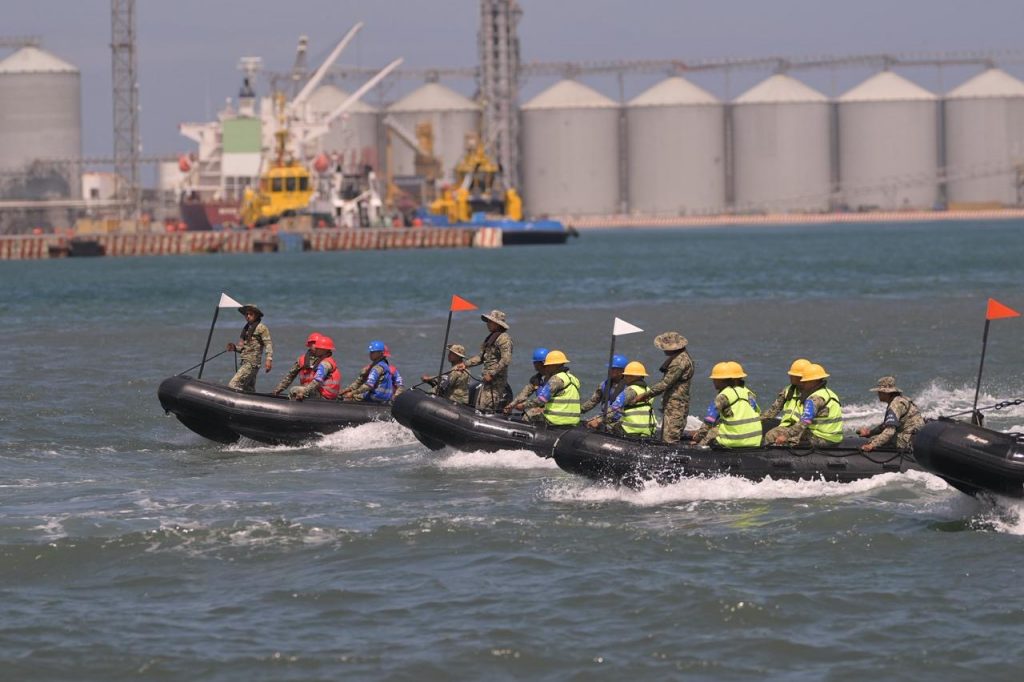 >En el puerto Cuatro Veces Heroico, mostró su poder aéreo, marítimo y anfibio.