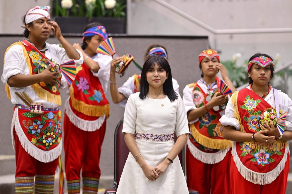 Acompañada por las presidentas del Poder Legislativo y Judicial, la Mandataria destacó la trayectoria de Ángela, resaltando su dedicación, talento y compromiso social, que la han convertido en un ejemplo para las juventudes veracruzanas y del país.