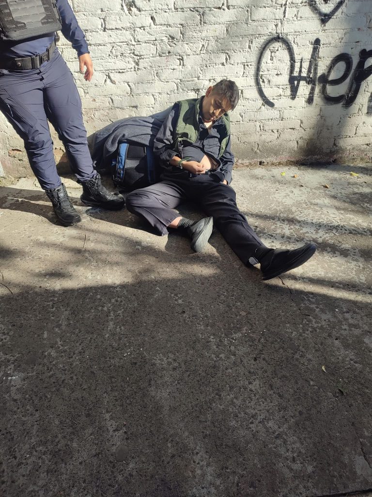 El hecho comenzó a circular en redes sociales, donde usuarios alertaban sobre una persona que permanecía sentada en la vía pública sin responder a estímulos.