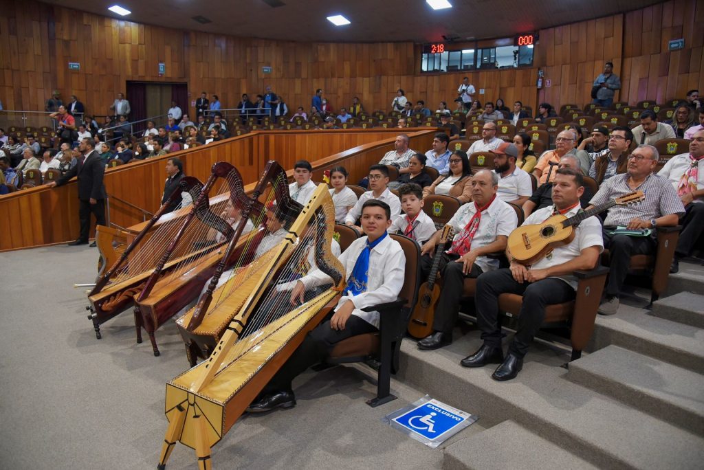 Tras recordar la composición, historia y atributos del arpa jarocha, reconoció su identidad como elemento fundamental en la cultura veracruzana por su uso en fandangos y en el son jarocho convirtiéndose en parte importante del patrimonio musical mexicano.