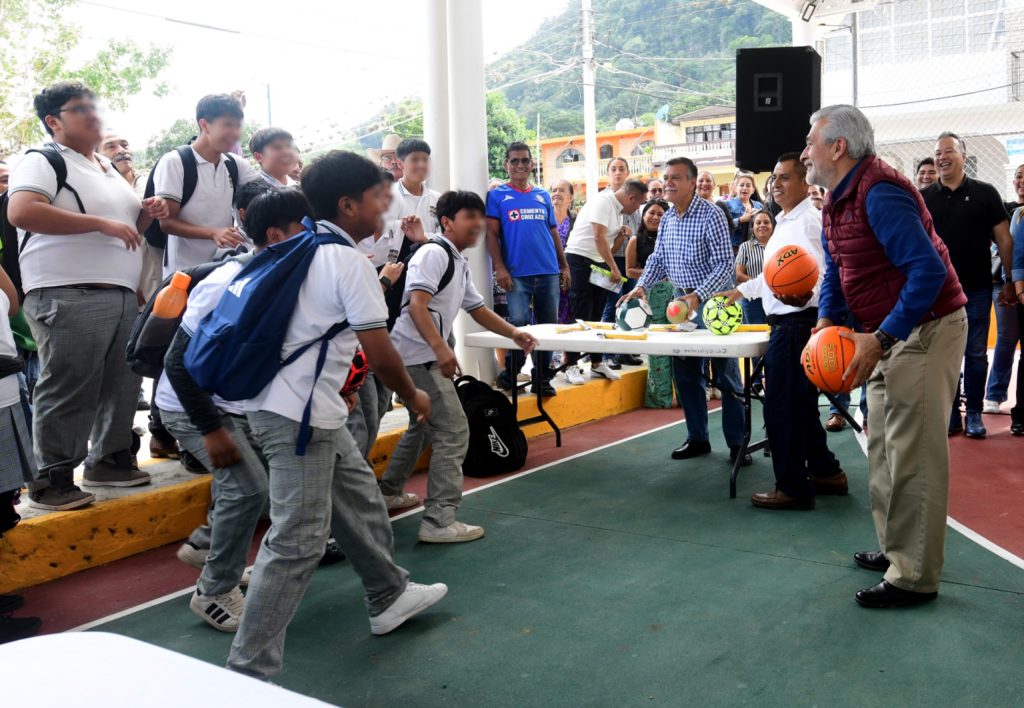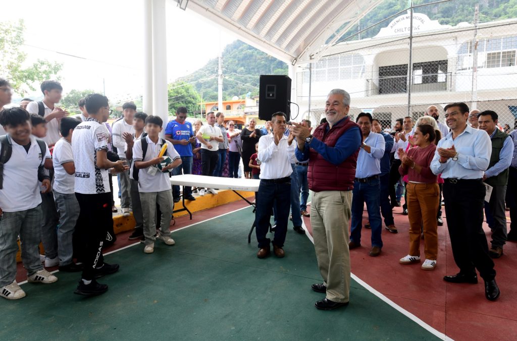Posteriormente, el Alcalde inauguró el domo ubicado en la explanada central de la congregación, obra realizada con una inversión superior a un millón y medio de pesos, destinada al disfrute de las y los estudiantes, así como de todas las familias que habitan en la localidad.