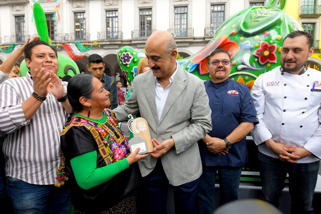 Como parte de la ceremonia protocolaria, el alcalde Ricardo Ahued entregó reconocimientos por su labor en la investigación y la gastronomía a Raquel Torres Cerdán y Clara Carrera Pérez, así como un reconocimiento póstumo a Mario Jiménez Cabrera, dueño de la fábrica de chiles “La Xalapeña”, mismo que recibió su viuda, Ana María Barradas.