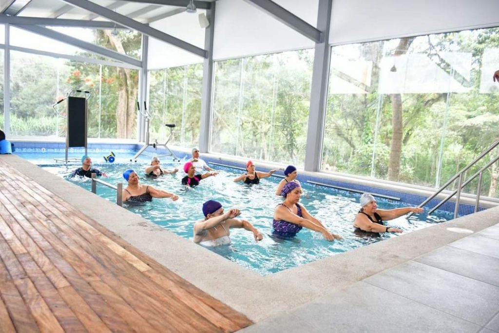 Las y los pensionados realizaron una clase muestra de aquaeróbic, estuvieron presentes las y los representantes sindicales integrantes del Consejo Directivo del IPE, los subdirectores, asociaciones de pensionados y trabajadores de la Estancia.