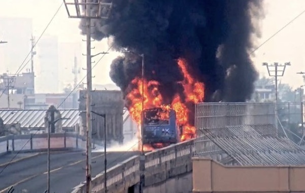 Hoy por la mañana, se incendió un camión de pasajeros en el Puente Morelos en el Centro de Veracruz.