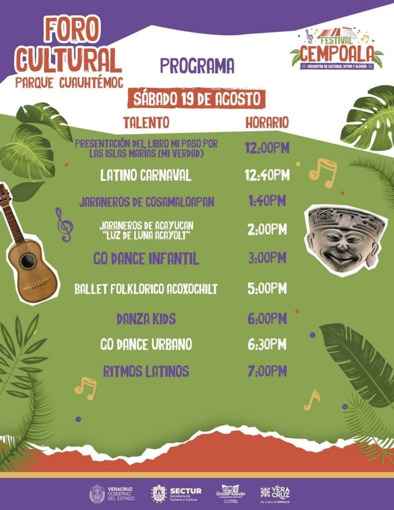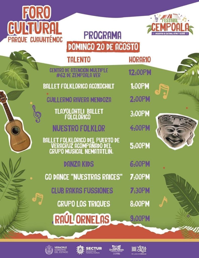 Hoy sábado se presentarán, Super Lamas, Los Ángeles de Charly, Los Super Caracoles y la Sonora Dinamita, cerrando con la presentación de Raúl Ornelas el domingo 20 en el teatro del pueblo Xipe-Totec, recordándoles que los eventos son totalmente gratuitos, algunos con cupo limitado.