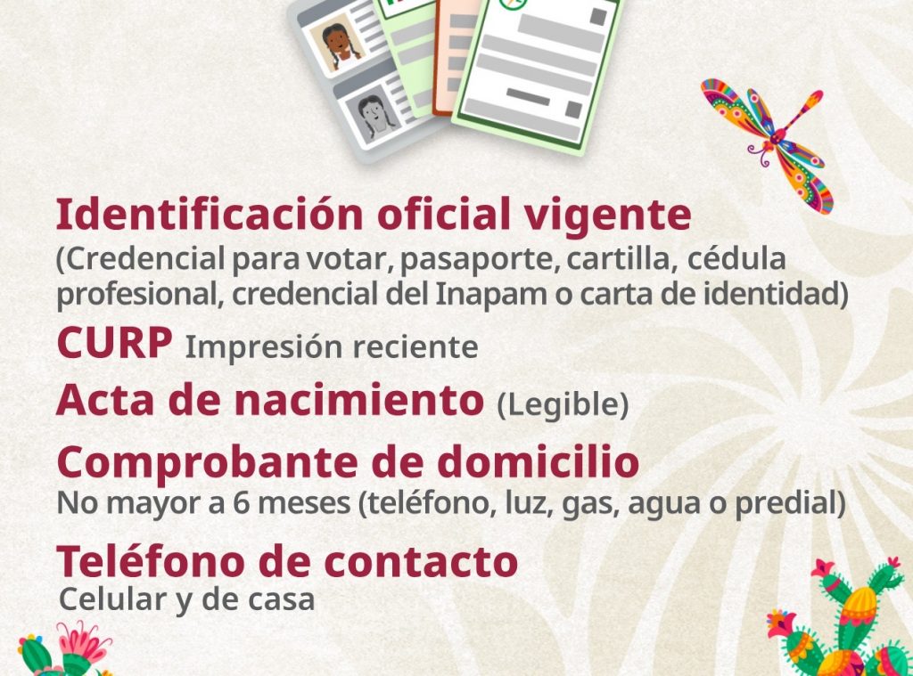 Presenta los documentos y el calendario para poder iniciar el proceso y resalta que en caso de, si por algún motivo no pueden realizar el registro de manera presencial se puede solicitar una visita domiciliaria por medio de la página oficial de las pensiones del Bienestar.