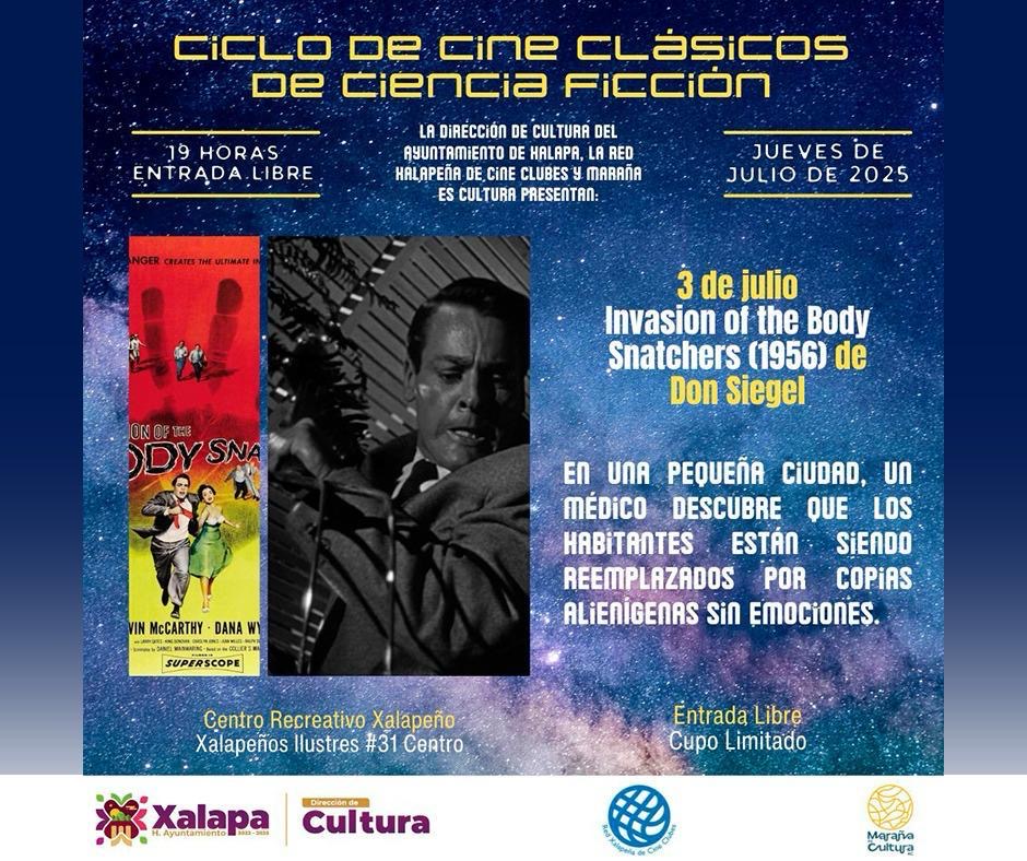 Más tarde, en el Centro Recreativo Xalapeño (CRX), iniciará el nuevo ciclo de cine “Clásicos de ciencia ficción”, con la proyección de la película “Invasion of the Body Snatchers”, de Don Siegel.