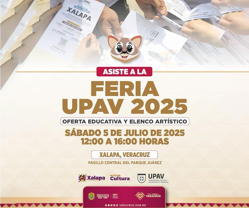 En el marco del “Sábado Cultural”, a las 12:00 horas, se llevará a cabo la Feria UPAV 2025, en el pasillo central del Parque Juárez, con oferta educativa y elenco artístico.