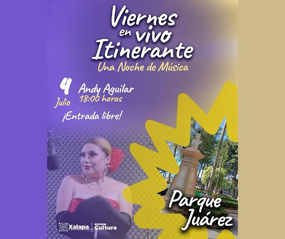 El viernes, el Parque Juárez será el escenario del “Viernes en vivo itinerante”, con la presentación musical de Andy Aguilar. A las 18:00 horas, en el Museo de la Música Veracruzana, se inaugurará la exposición UGD sobre música: al compás del diseño.
