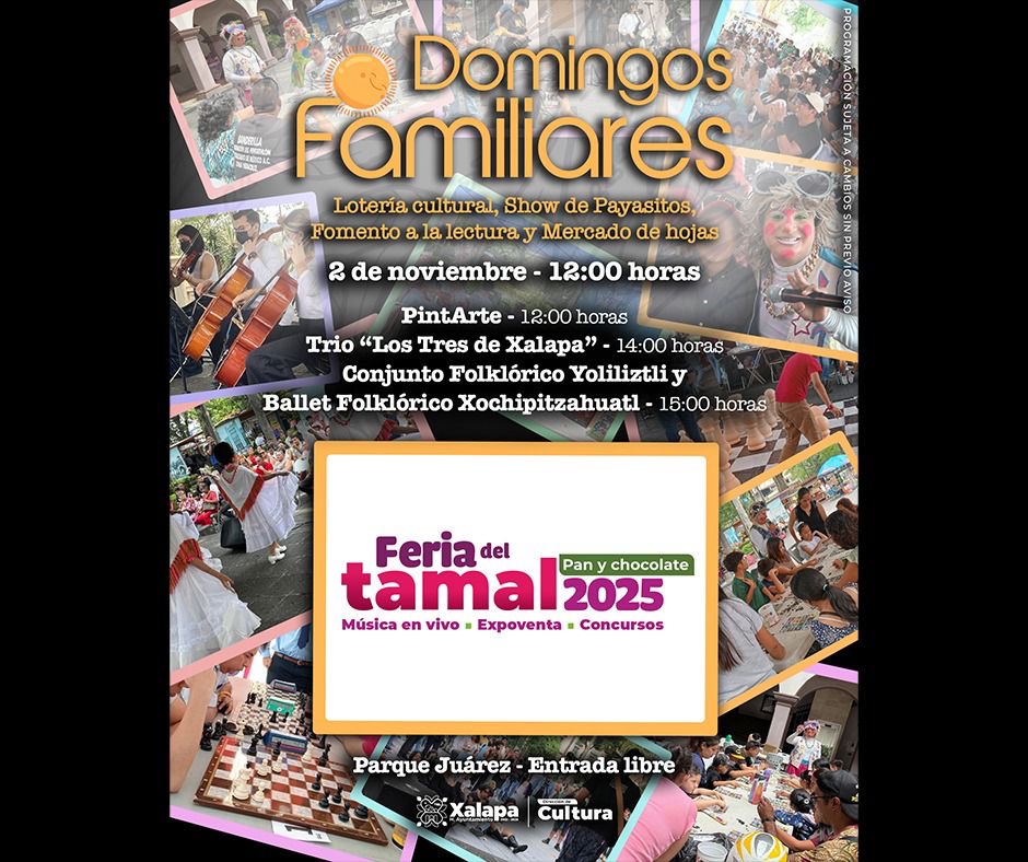 El viernes, desde las 10:00 horas, en el parque Juárez se desarrollará la Feria del Tamal, Pan y Chocolate 2025, con música en vivo, expo-venta y concursos. A las 10:00 horas, en el Muxa, se tendrá el Taller de Creación Literaria de Mercedes Huerta, para jóvenes de 14 a 18 años.
