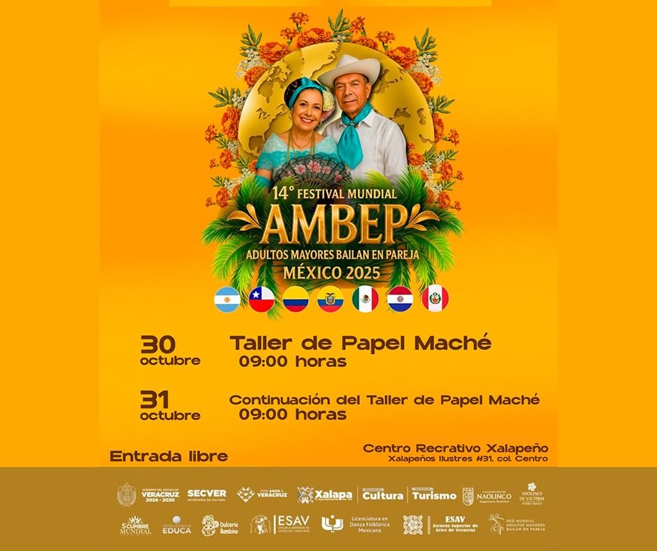 El miércoles, desde las 9:00 horas, continuará el Festival Mundial AMBEP, con el Taller de danza Xantolo, en el CRX. A las 17:00 horas, en el Museo Casa de Xalapa (Muxa), se ofrecerá la charla “Aprende a usar tu energía”.