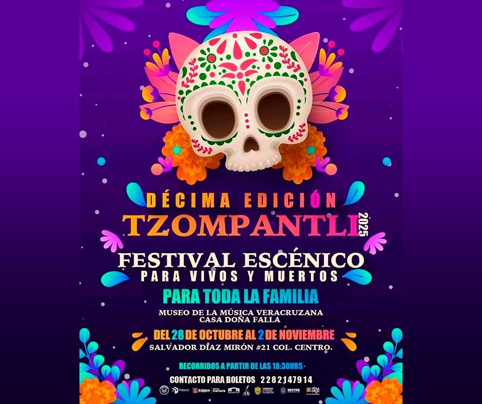 Xalapa, Ver.- Los festivales Tzompantli, Mictlán y la Feria del Tamal, Pan y Chocolate 2025, forman parte de la agenda de actividades culturales que preparó el Ayuntamiento para esta semana.