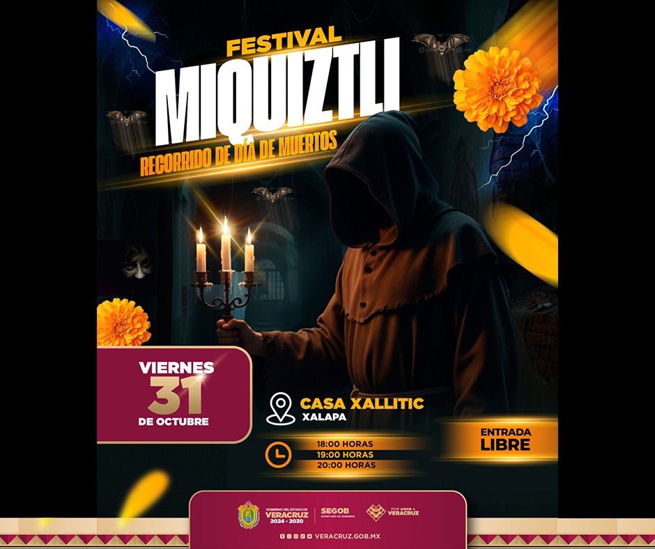 El jueves, como parte de este Festival, en el CRX se tendrá un Taller de papel maché a las 9:00 horas. A las 17:00 horas, en el Museo de la Música Veracruzana, se presentará el libro “Sublimes sombras poéticas”, de Alicia Soto Palomino; a esta misma hora, en las “Tardes de Xallitic”, estará Armando Platas, “el Brillo de la Cumbia”. Además, en Casa Xallitic se inaugurará un altar de muertos.