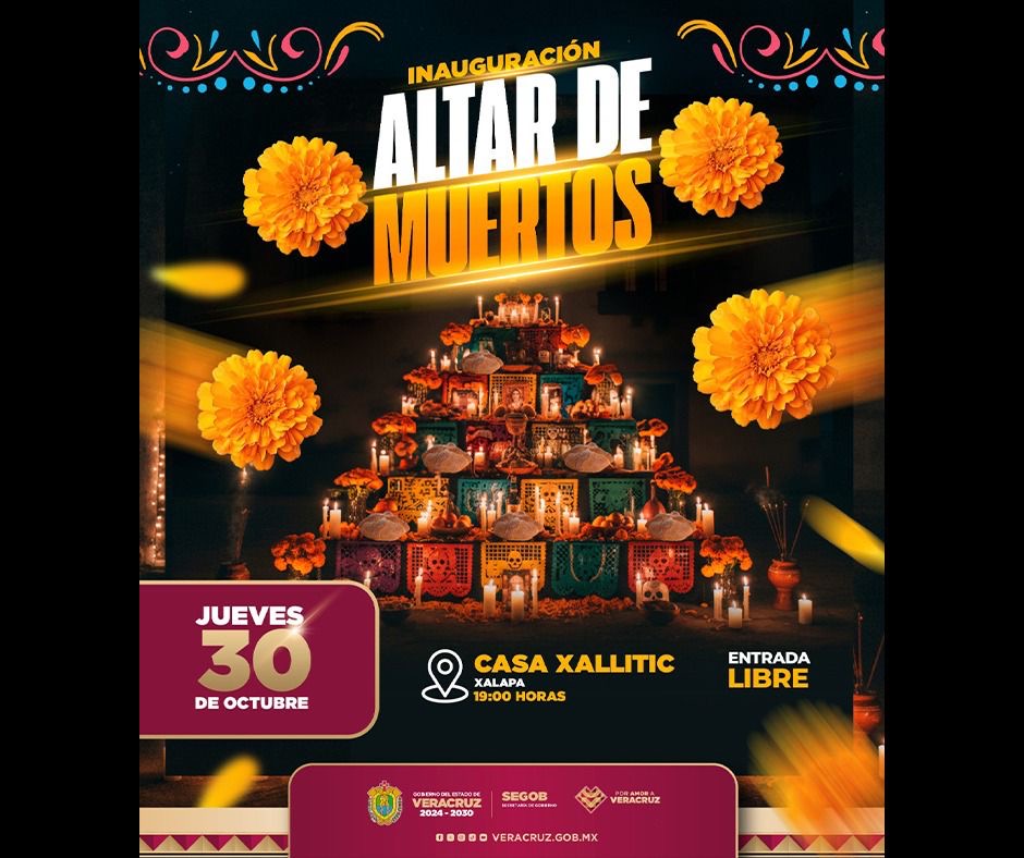A las 18:00 horas, en Palacio Municipal, se inaugurará el altar de Día de Muertos dedicado al maestro Esteban Rizo Báez, con la presentación musical de la Tuna Femenil de la Universidad Veracruzana; a esta misma hora, continuará el Festival Mundial AMBEP, con una función especial.