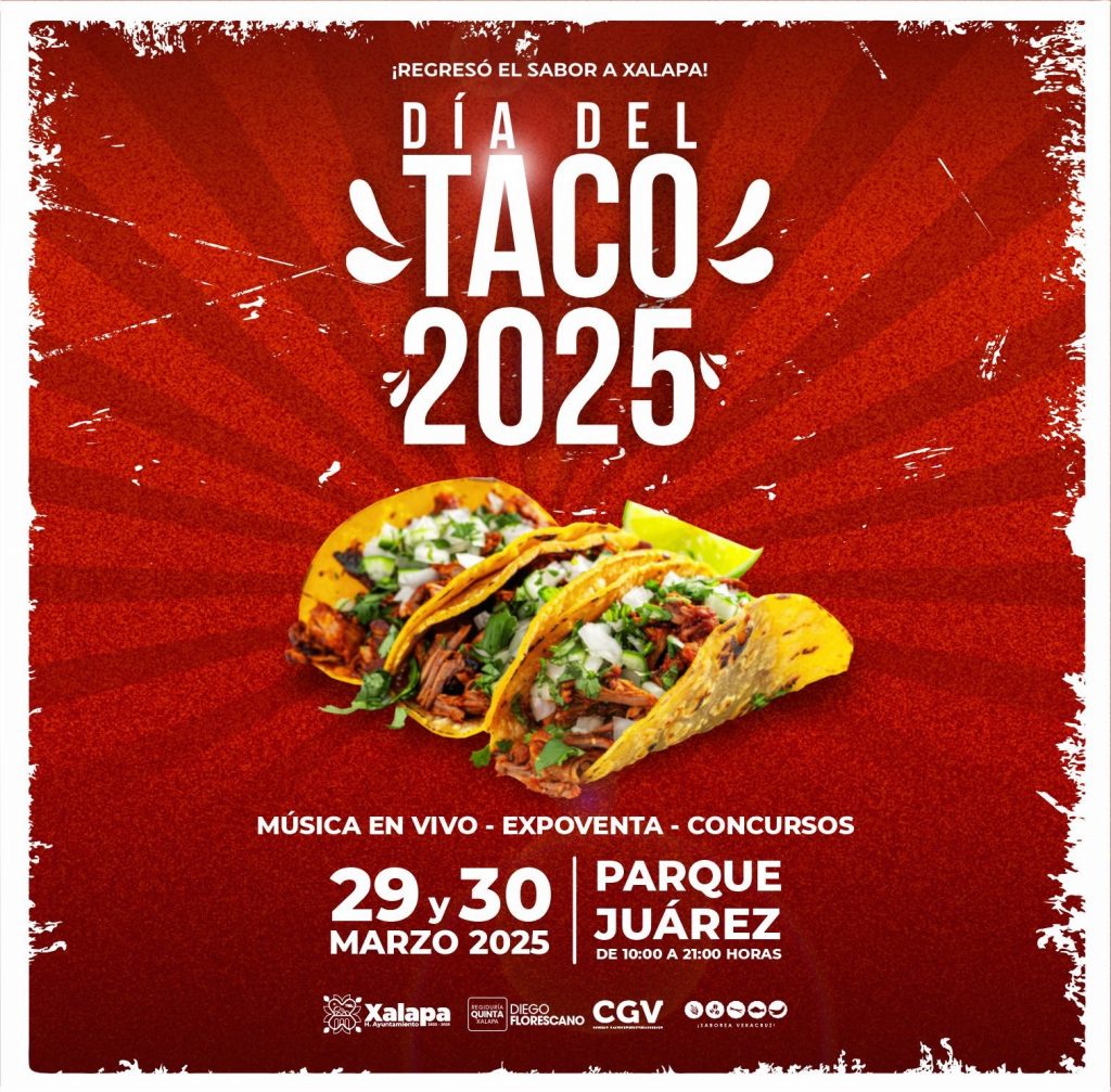 Xalapa, Ver.- El Ayuntamiento de Xalapa y el Consejo Gastronómico Veracruzano (CGV) invitan a la ciudadanía a celebrar el Día del Taco 2025, este 29 y 30 de marzo en el Parque Benito Juárez, de 10:00 a 21:00 horas.