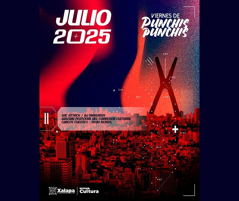 A las 19:00 horas, habrá tres actividades simultáneas: La muestra de danza “La salida está en la entrada”, del Instituto Nandehui, en el Teatro J. J. Herrera; La presentación musical de “Viernes de Punchis Punchis”, con Sac Attack y DJ Makuash, en la Galería Peatonal del Corredor Cultural “Carlos Fuentes”; y la inauguración de la exposición “Pinceladas de Orizaba”, de Édgar Alegre Reyero, en el CRX.