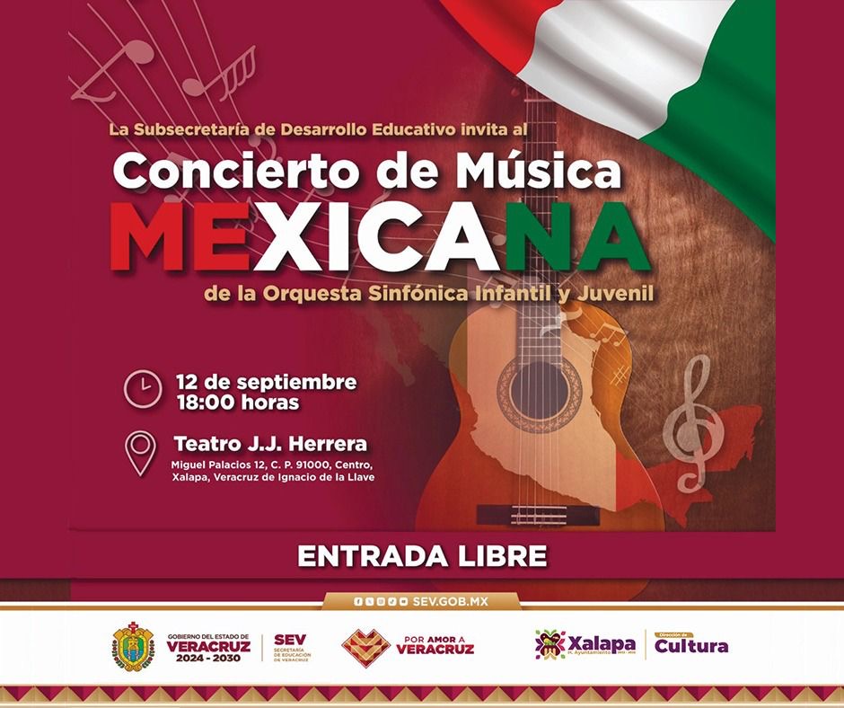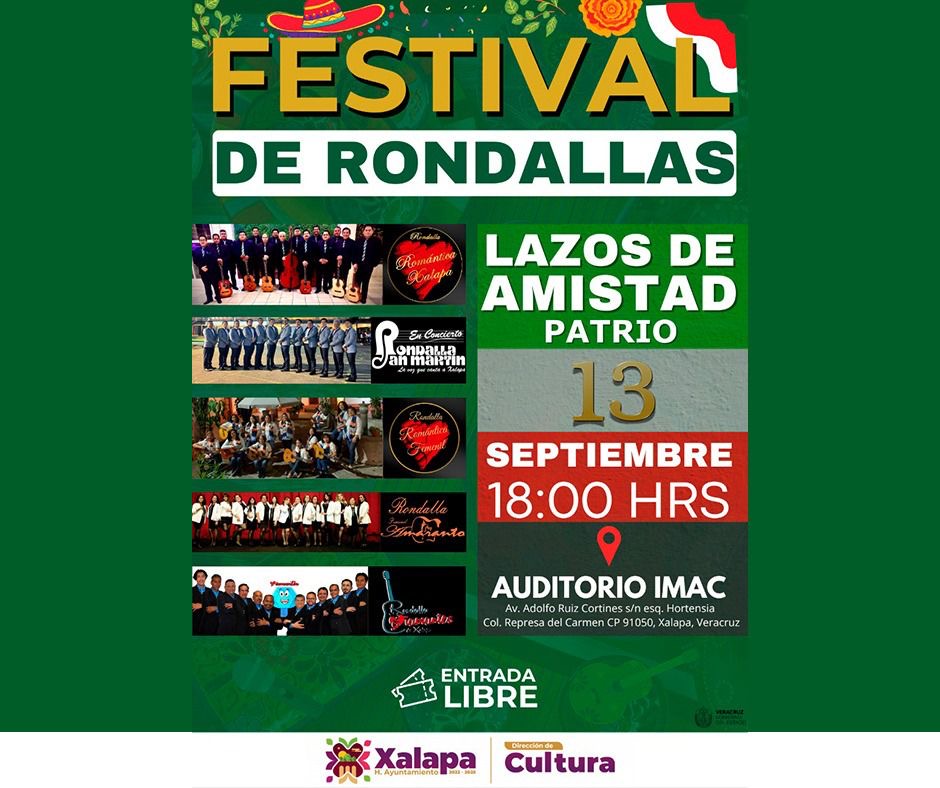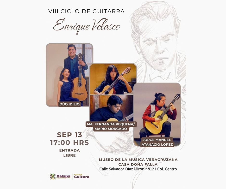 Ese mismo día, a las 17:00 horas, en el Museo de la Música Veracruzana se presentará el VIII Ciclo de Guitarra “Enrique Velasco”, y en el auditorio de la IMAC, a las 18:00 horas, tendrá lugar el festival de rondallas “Lazos de amistad patrio”.