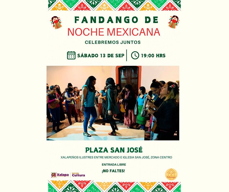 A las 19:00 horas, la Plaza San José será sede del Fandango de Noche Mexicana, a cargo de Culturaama y la Casa del Son.