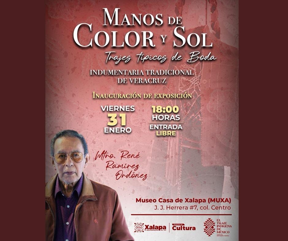 Destacan el Ballet Folklórico Tochtli y grupos musicales como Fiesta de Son y Banderock. A las 18:00 horas, en el Museo de la Música Veracruzana, se ofrecerá el recital “Renacer”, y a la misma hora, en el Muxa, el coleccionista René Ramírez Ordóñez presentará su indumentaria de trajes típicos de boda “Manos de color y sol”.