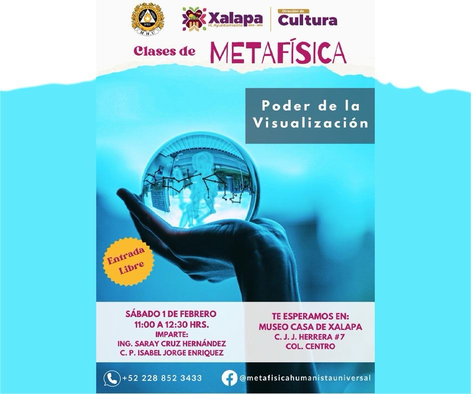 El sábado 1 de febrero, a las 11:00 horas, en el Muxa continúa el ciclo de charlas y clases de metafísica con la charla “El Poder de la visualización”. Asimismo, continúan las actividades del festival “Vive la Candelaria en Xalapa” en el Parque Juárez.