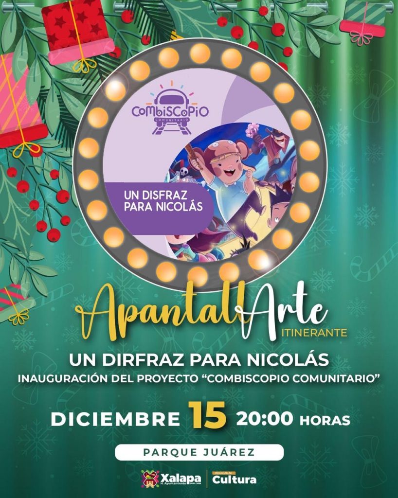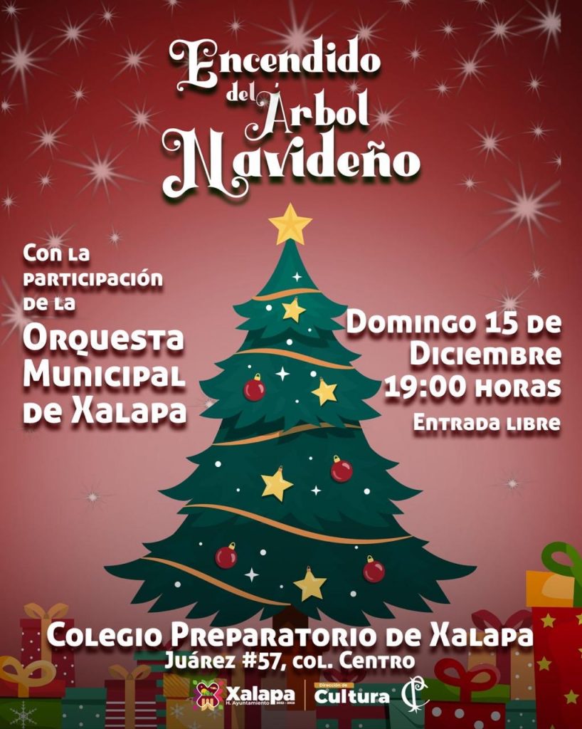 La jornada cultural culminará con el encendido de un árbol navideño, a las 19:00 horas, en el Colegio Preparatorio de Xalapa, con la presentación de la Orquesta Pauta Nueva. A las 20:00 horas en el Parque Juárez se presentará el proyecto “Combiscopio” y “Un disfraz para Nicolás”, dentro del programa ApantallArte.