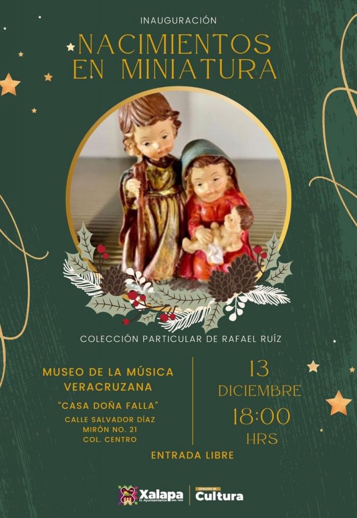 A las 19:00 horas, en el Museo de la Música Veracruzana se inaugurará la exposición “Nacimientos en miniatura”; además, en este mismo recinto, se tendrá “Punchis, punchis”.