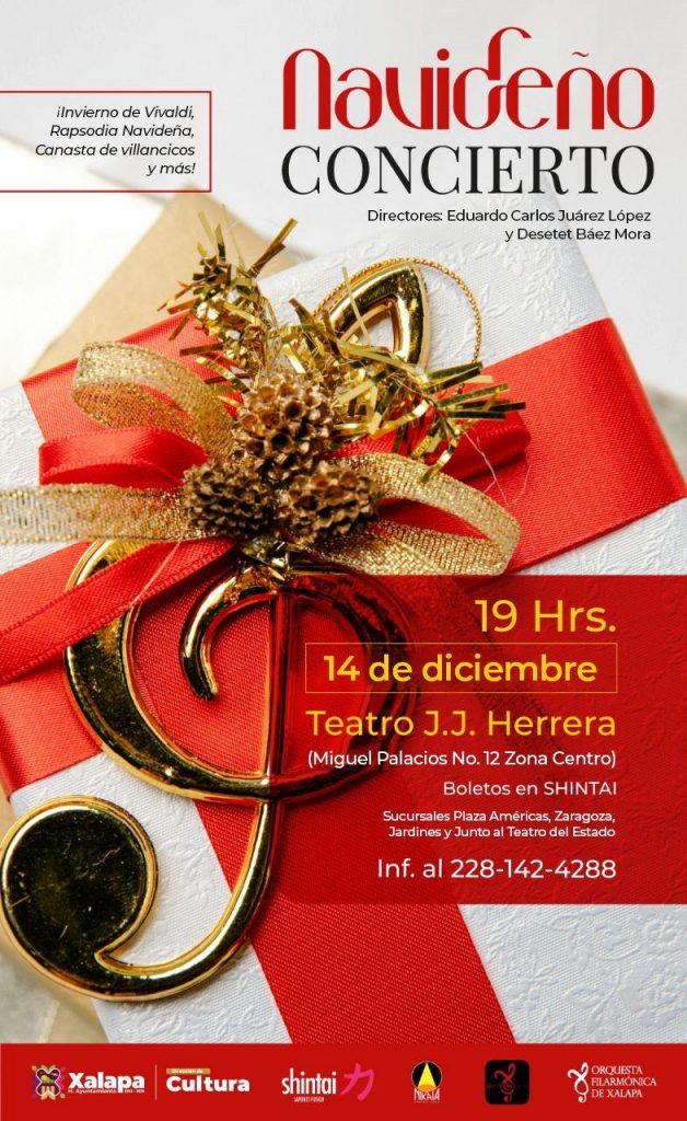 A las 18:00 horas se realizará el concierto “Din, Don Dan, canciones navideñas”, con Grace y Miguel, en el MUXA, y a las 19:00 horas, un concierto navideño en el Teatro J. J. Herrera, a cargo de Eduardo Carlos Juárez López y Desetet Báez Mora.