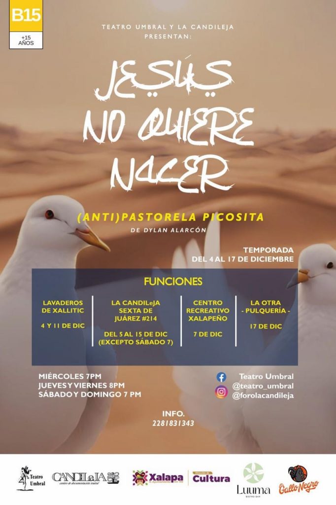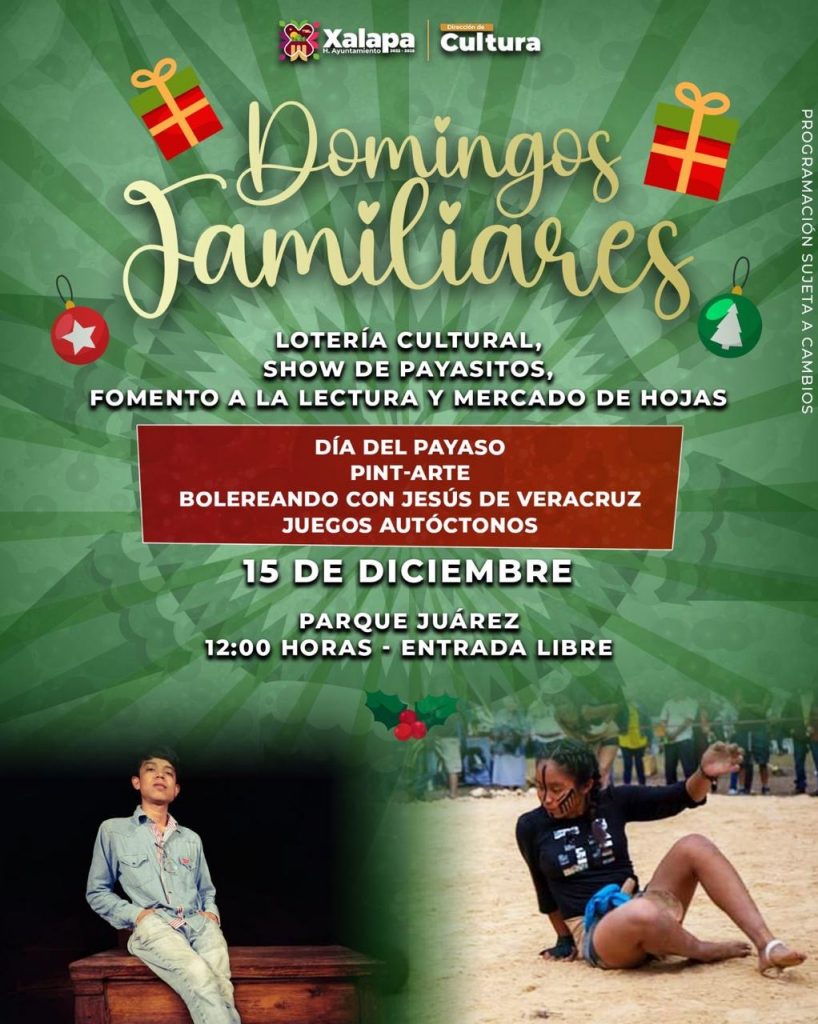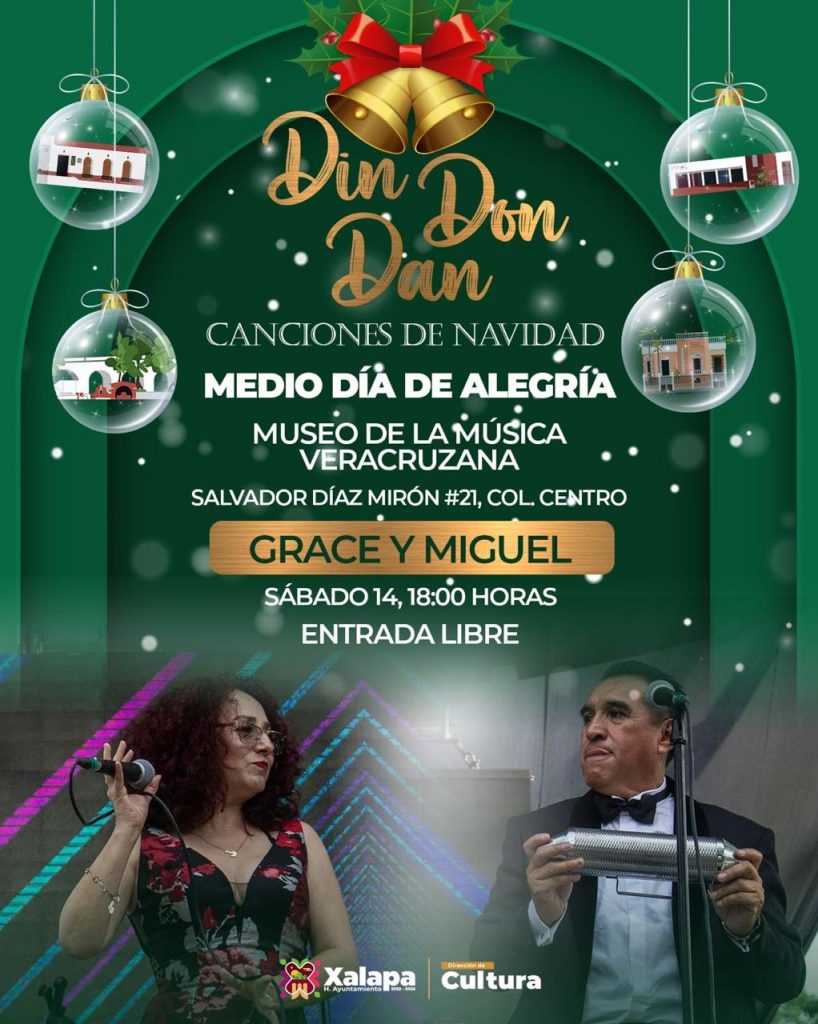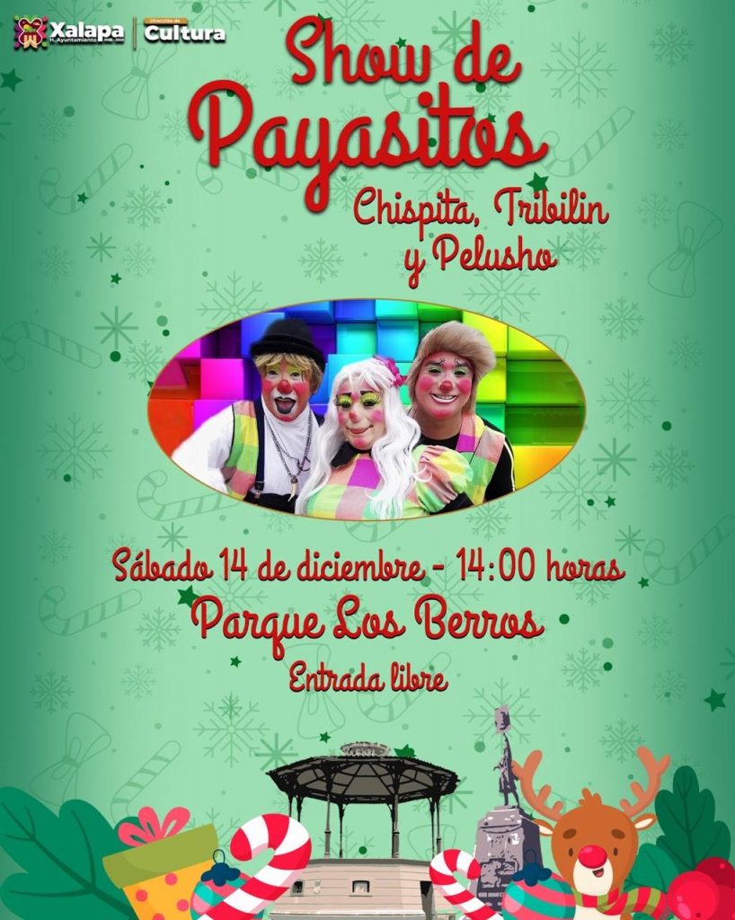 El miércoles 11 de diciembre se presentará “El Gran Show Man”, a las 11:00 horas, en el auditorio de la IMAC, posteriormente se podrá disfrutar del concierto “Din, Don, Dan, canciones de navidad”, con el Dueto Mela´O, en el Museo Casa de Xalapa (MUXA). A las 19:00 horas se tendrá la obra “Jesús no quiere nacer”, de Teatro Umbral, en el Barrio Mágico de Xallitic.