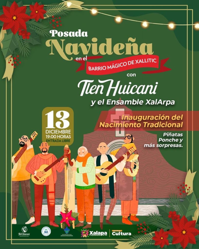 Asimismo, se llevará a cabo una posada navideña con el Grupo Tlen Huicani y el Ensamble XalArpa, en el Barrio Mágico Xallitic, a las 19:00 horas.